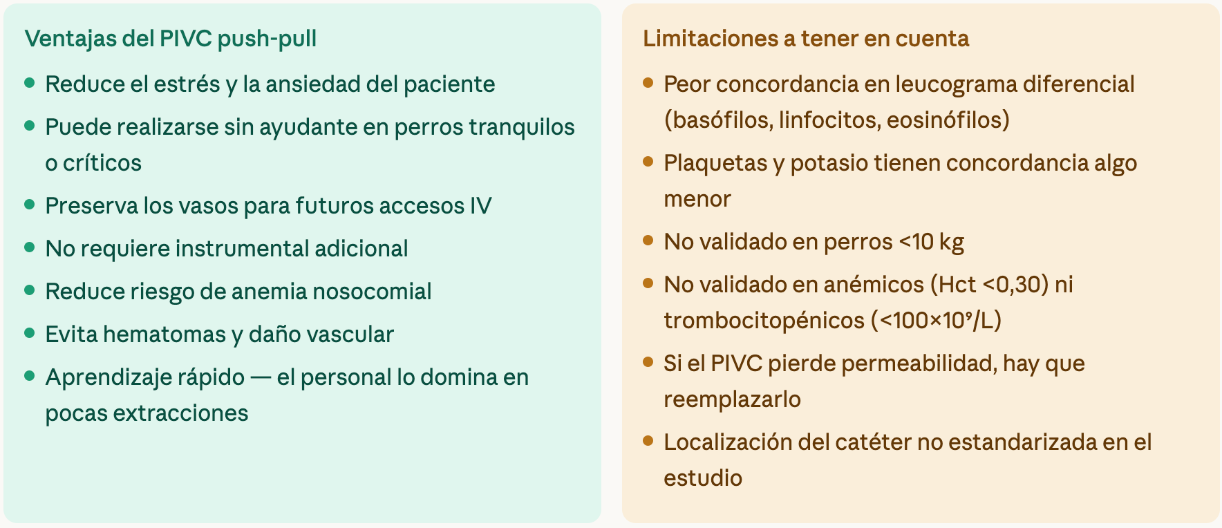 El protocolo “push-pull” a través del catéter intravenoso es seguro, eficaz y clínicamente equivalente a la venopunción en perros hospitalizados que cumplen los criterios establecidos en el presente trabajo.