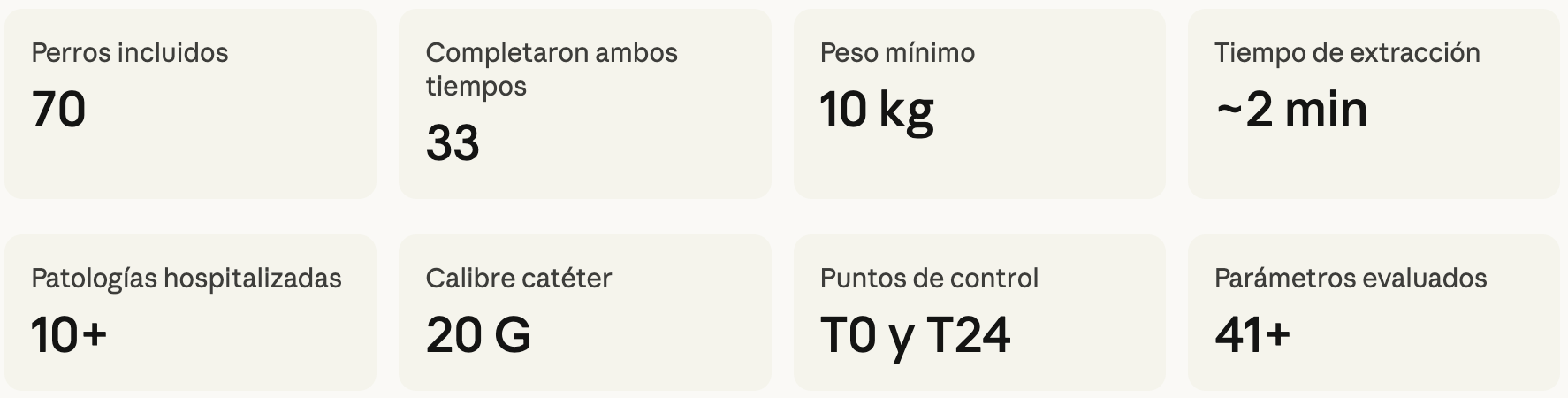 Todos los parámetros del hemograma y bioquímica se mantuvieron dentro de los límites de error aceptables para la toma de decisiones clínicas, incluso tras 24 horas de fluidoterapia y administración de medicamentos por el mismo catéter.