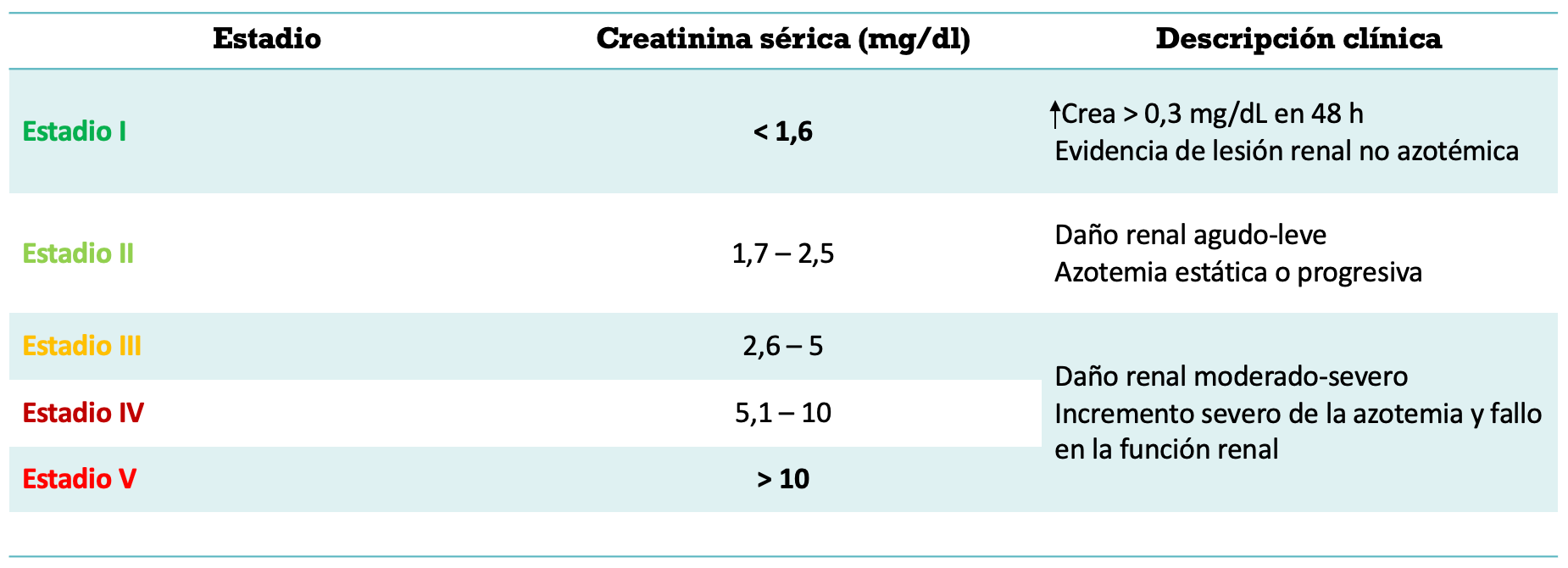 Una vez identificada la sospecha clínica de ERA, se deben utilizar sistemas de clasificación específicos para categorizar la gravedad del daño renal.