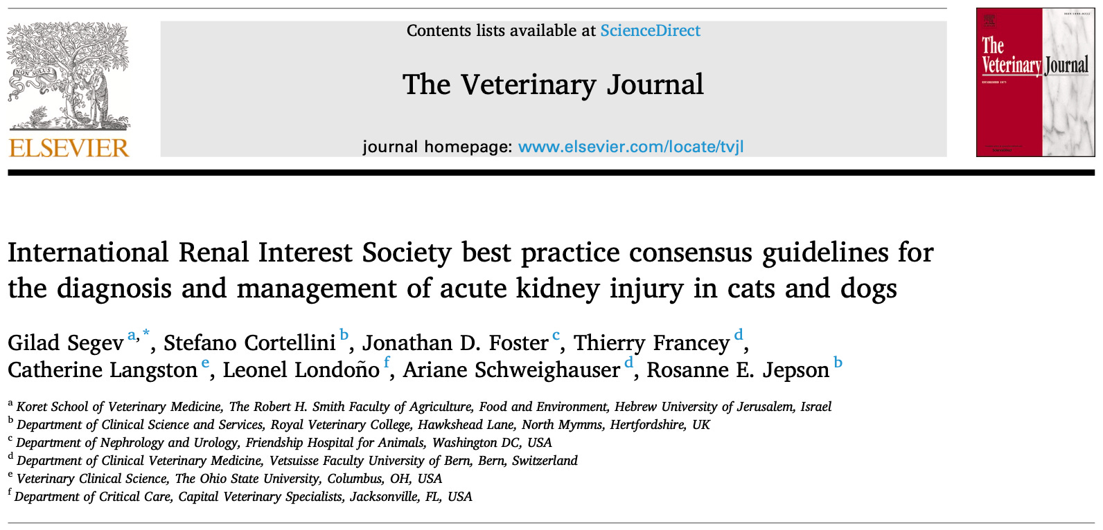 Recientemente (Febrero 2024) se ha publicado las “guías de consenso de mejores prácticas de la International Renal Interest Society (IRIS) para el diagnóstico y tratamiento de la enfermedad renal aguda en perros y gatos”.