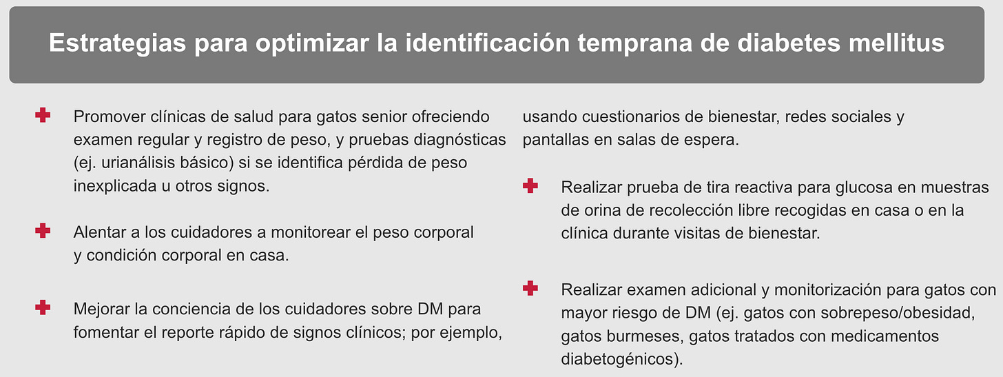 El diagnóstico y tratamiento temprano en el curso de la enfermedad puede optimizar la posibilidad de remisión diabética, así como mejorar los resultados del animal evitando la pérdida significativa de peso y el desarrollo de complicaciones.
