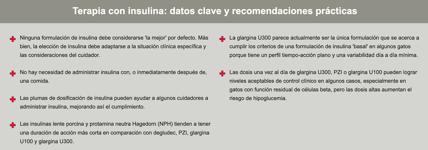 La insulina glargina U300 es actualmente la que más se acerca a cumplir este estándar en gatos.