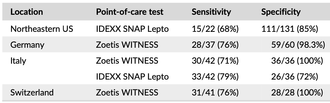 Diferentes estudios sugieren que un resultado IgM positivo en un perro no vacunado con signos consistentes con leptospirosis apoya fuertemente el diagnóstico (especificidad > 97%).