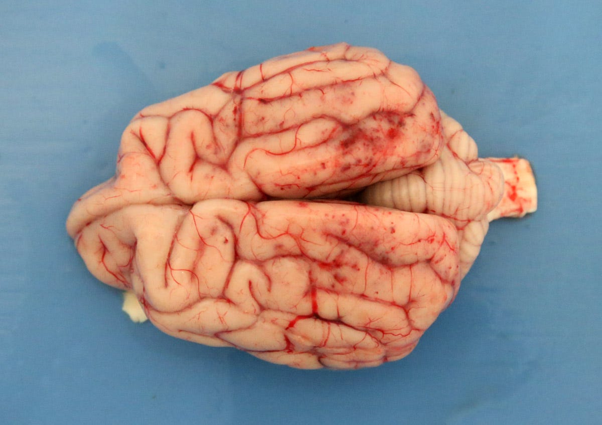 Este hallazgo ha sido descrito en casos previos de VCGR, en los que el análisis histopatológico del tejido nervioso reveló cambios leves inespecíficos y degeneración y necrosis neuronal multifocal con hemorragia y edema.